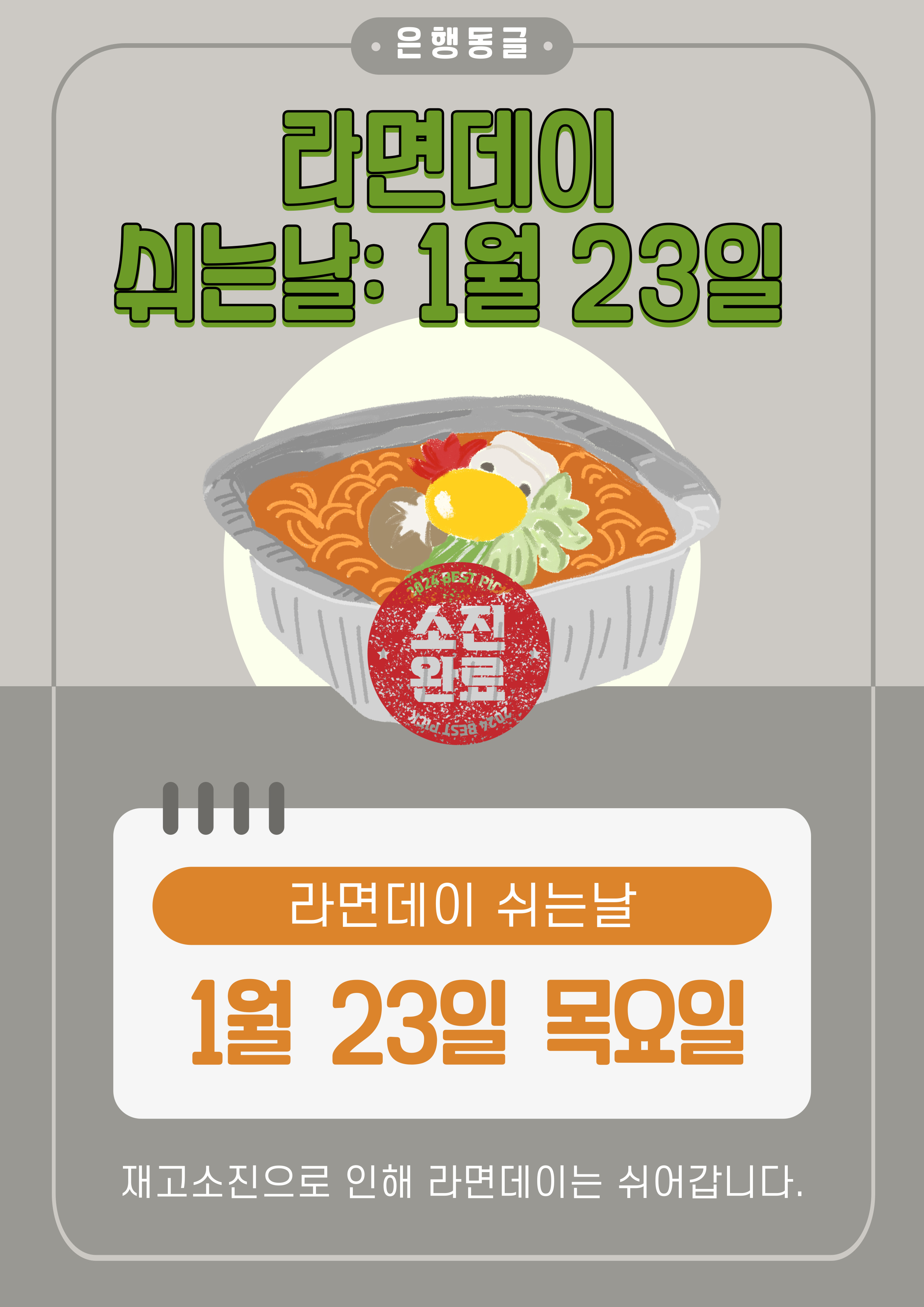 재료소진으로 1월 넷째주 목요일 먹어보자공(라면데이)는 쉬어갑니다.