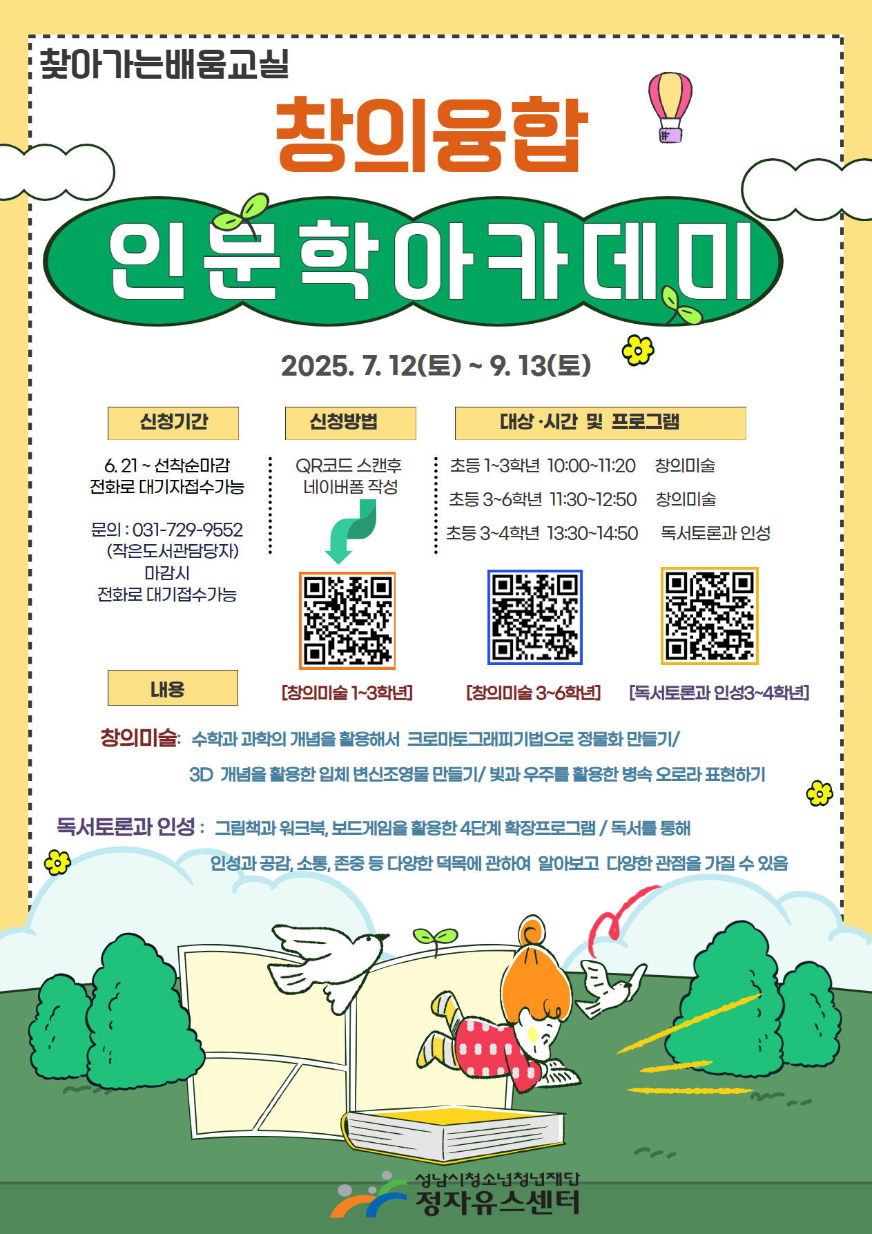 - 독서토론과 인성 (초등3~4학년): 매주 토요일 13:30~14:50