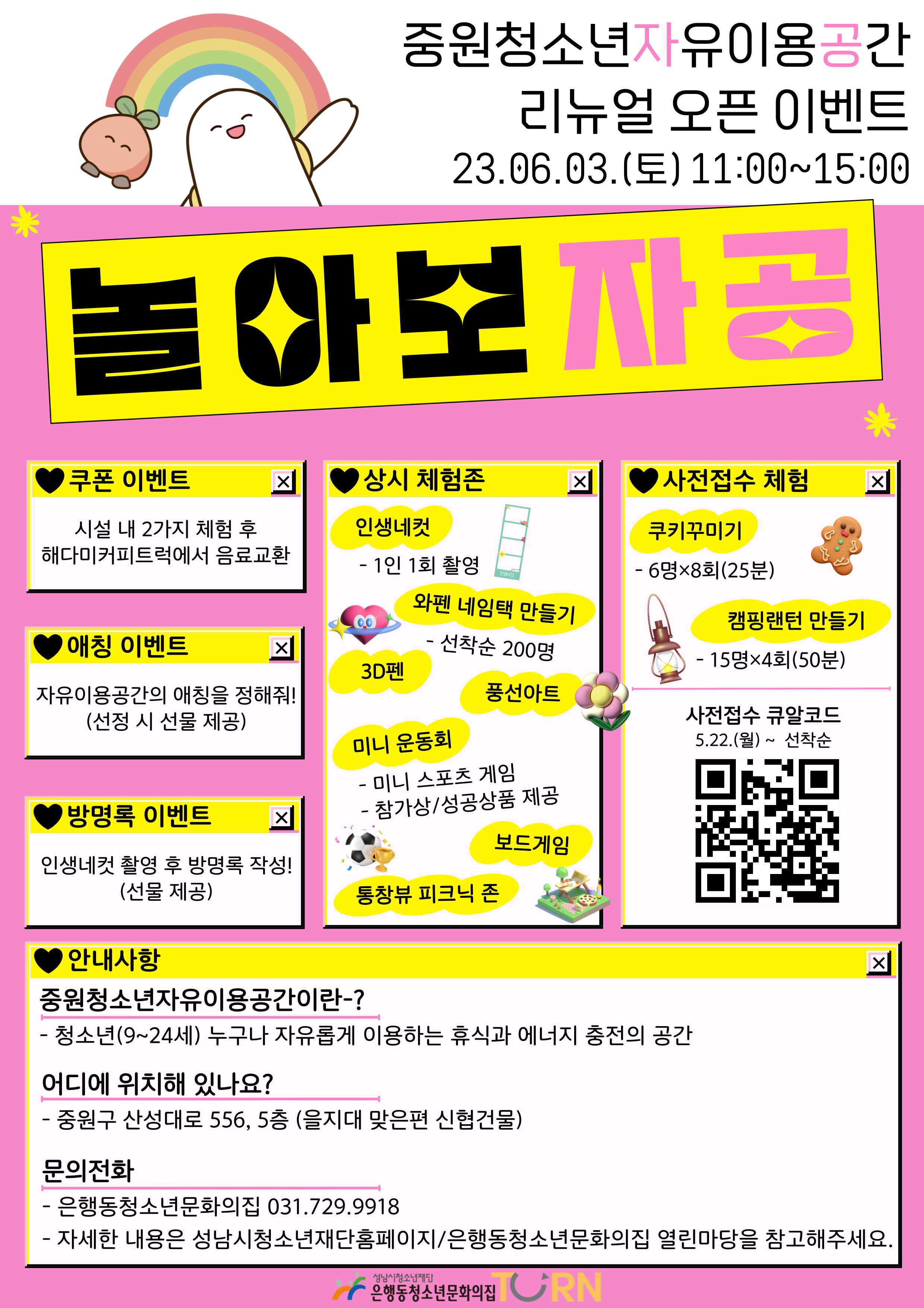 [중원청소년자유이용공간 리뉴얼오픈이벤트 '놀아보자공']