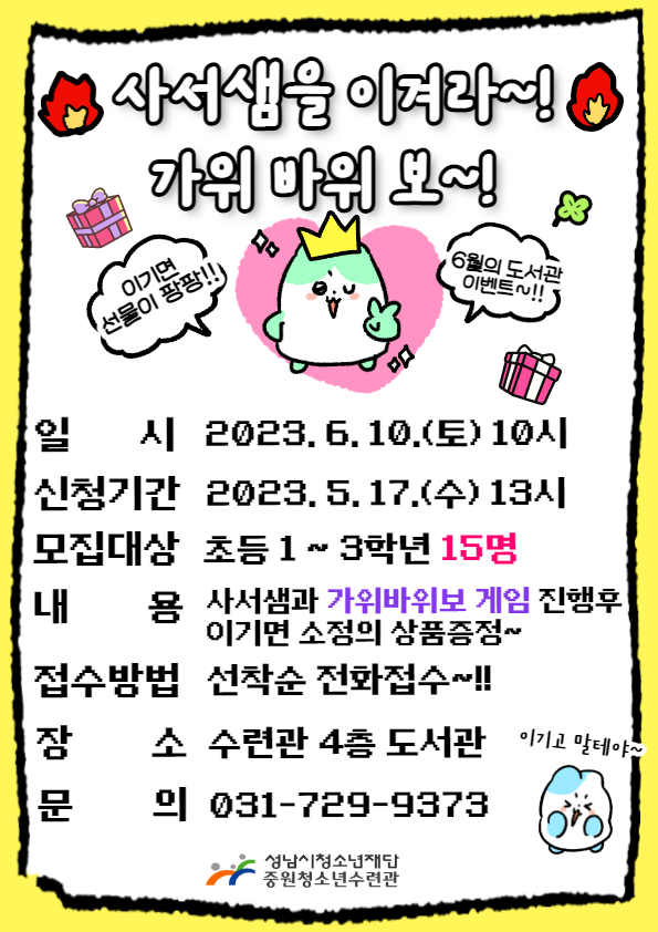 - 내 용: 사서샘과 가위바위보 게임 진행후 이기면 소정의 상품증정