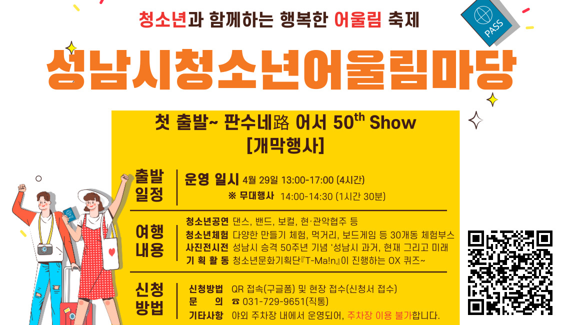 성남시청소년어울림마당『개막행사』‘판수네路 어서50th Show’ 안내 및 참가 신청