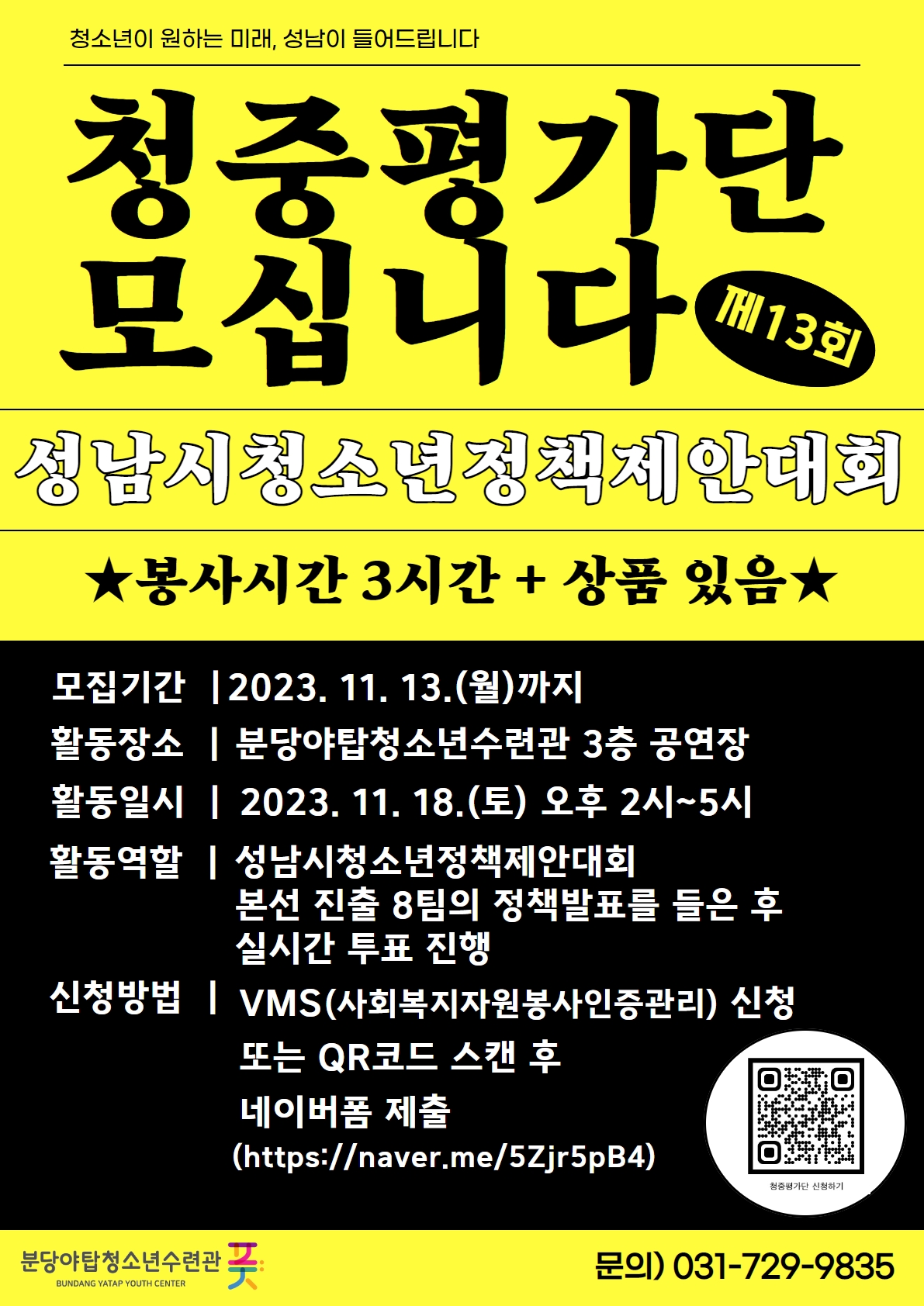 ▶ 문의:  분당야탑청소년수련관 활동사업팀 031-729-9835