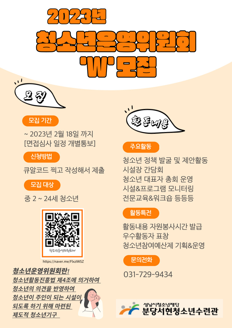 2023년 청소년운영위원회 모집 안내