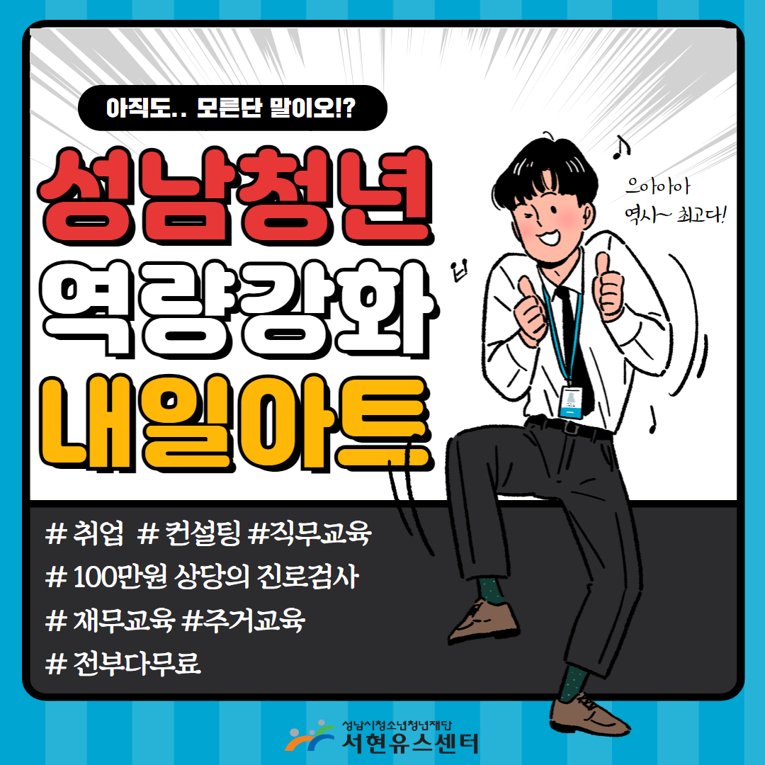서현유스센터에서는 청년의 취업을 위한 자립지원 및 진로탐색 교육, 전문교육 등을 통해