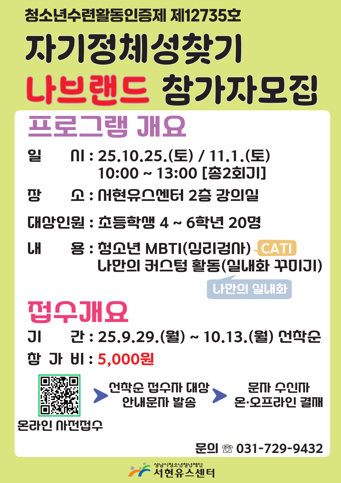 □ 문의서현유스센터 활동사업팀 031-729-9432 (09:00~18:00)