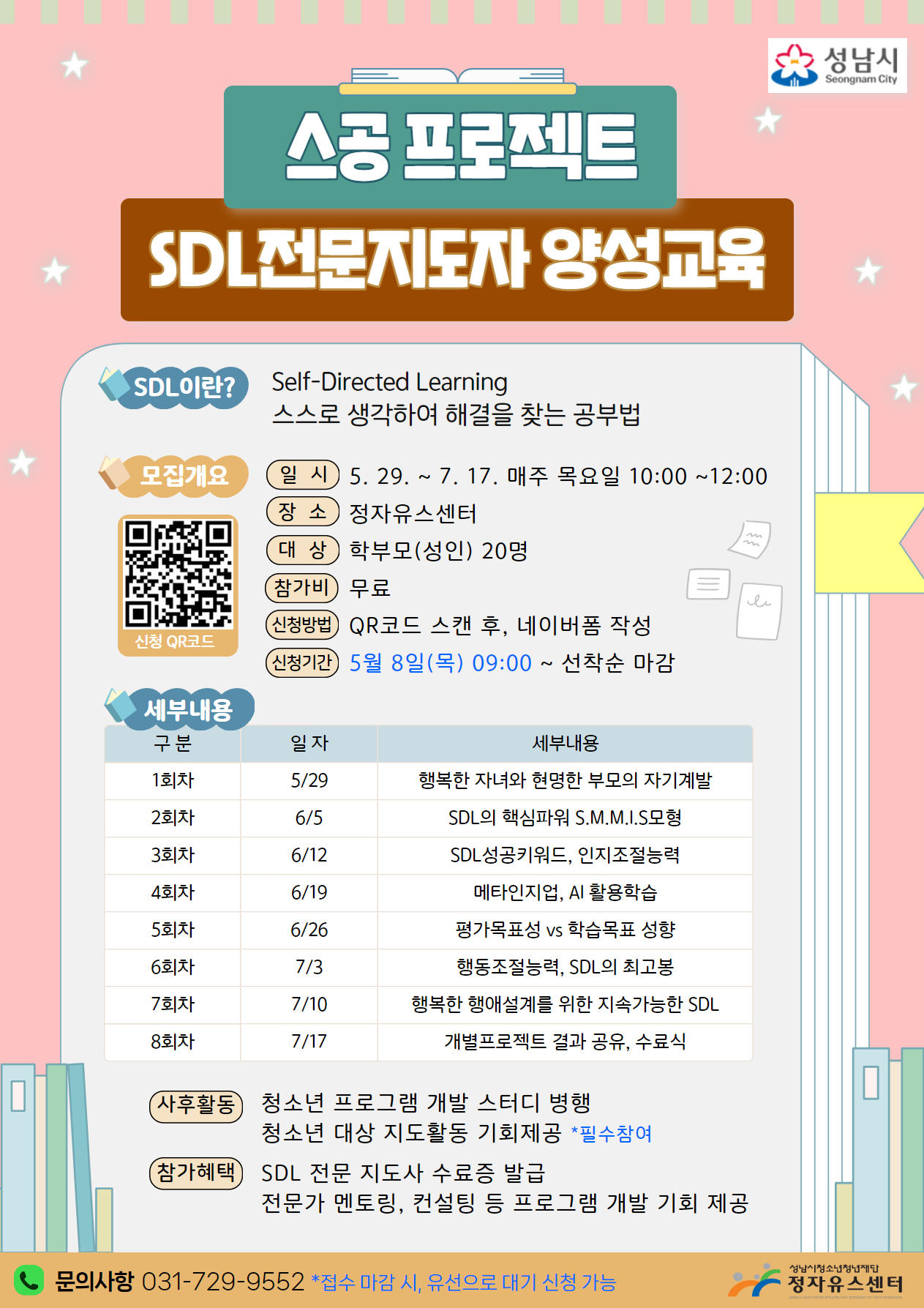 정자유스센터에서는 학부모 대상으로 SDL전문지도사 양성교육 참가자를 모집합니다.
