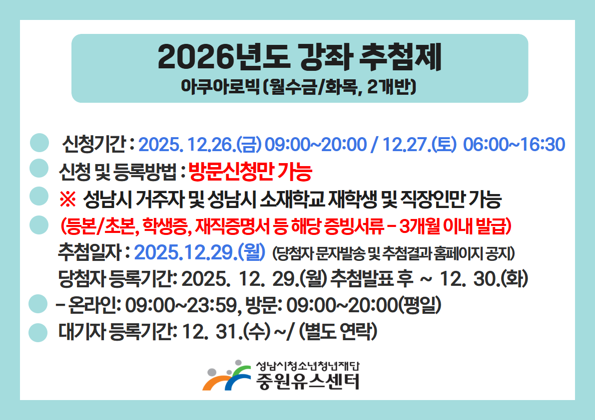2026년도 강좌 추첨제 - 아쿠아로빅 안내