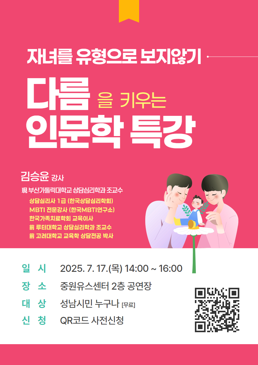 자녀를 유형으로 보지않기! 다름을 키우는 인문학 특강 사전 참가 신청 안내