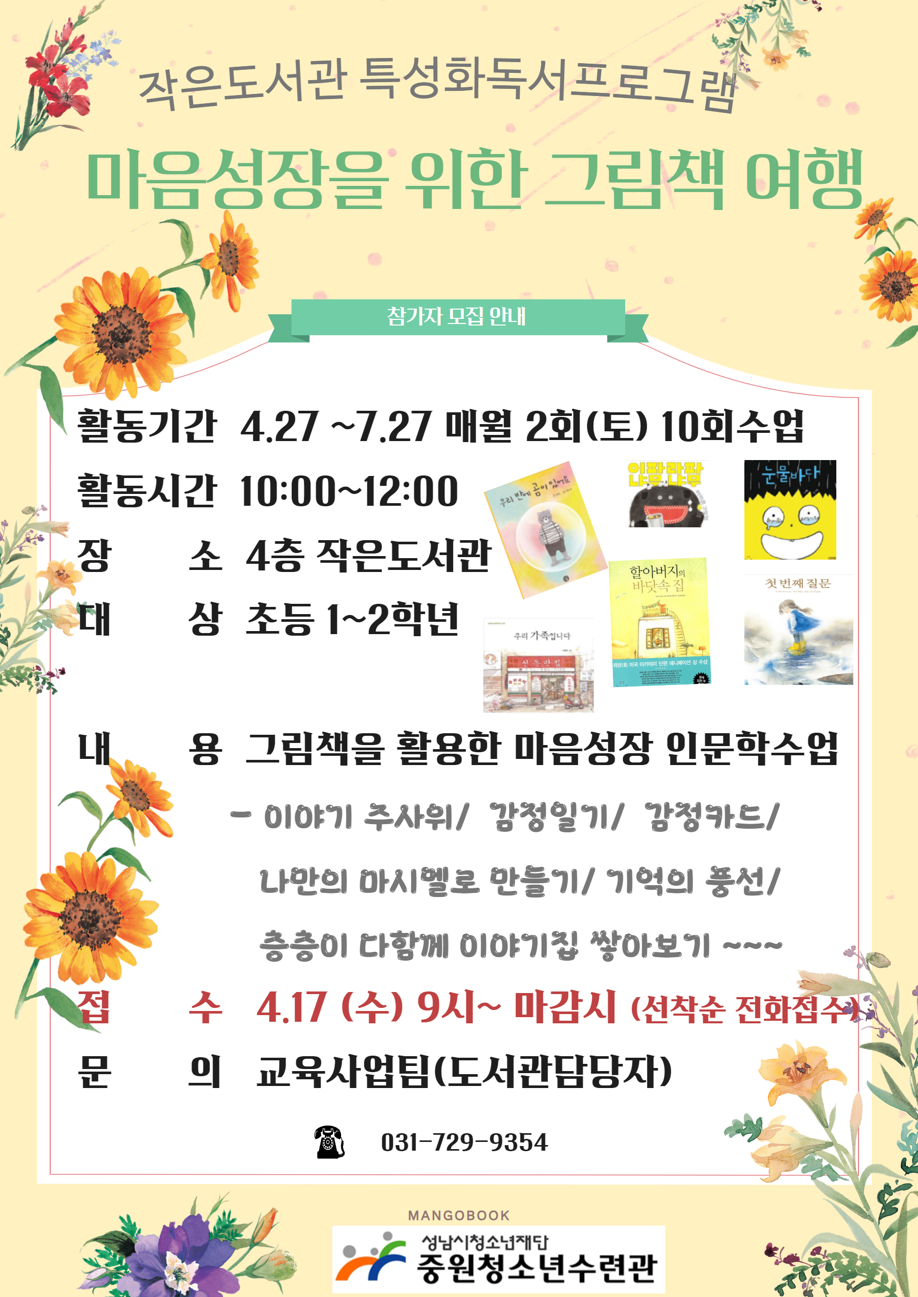 <마음성장을 위한 그림책 여행> 참가자 모집안내