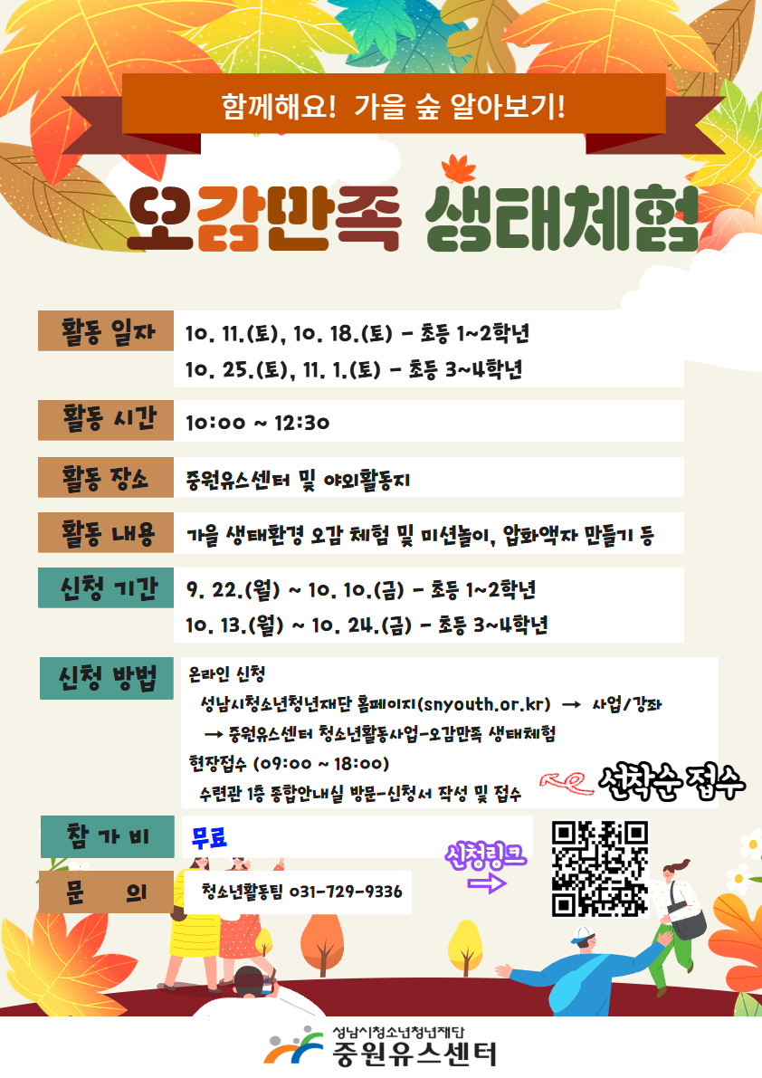 문의 : 중원유스센터 활동사업팀 031)729-9336